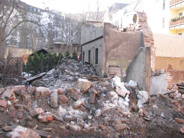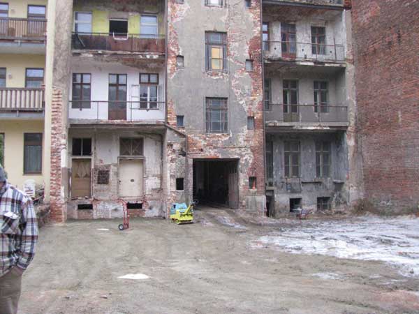 Landeskronstraße vor der Sanierung. Stand Abbruch der hofseitigen Nebengebäude